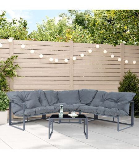 CASA.PRO Set Salottino per Esterno Karg Divano Modulare a 3 pezzi e Tavolino con Piano in Vetro Nero Mobili da Giardino- Grigio Scuro