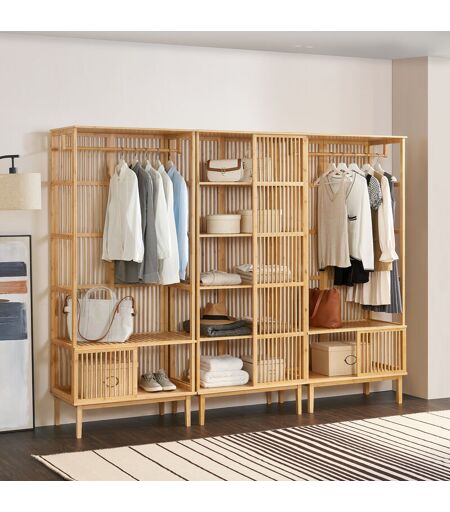 [EN.CASA] - Set Organizzatore Guardaroba in Bambù 2 Armadi Aperti e 1 Scaffale