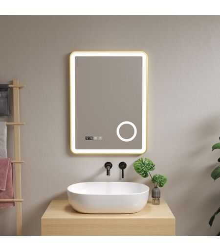 PRO.TEC Specchio LED da Parete Pescara Multifunzionale 60 x 80 cm Cornice Dorata