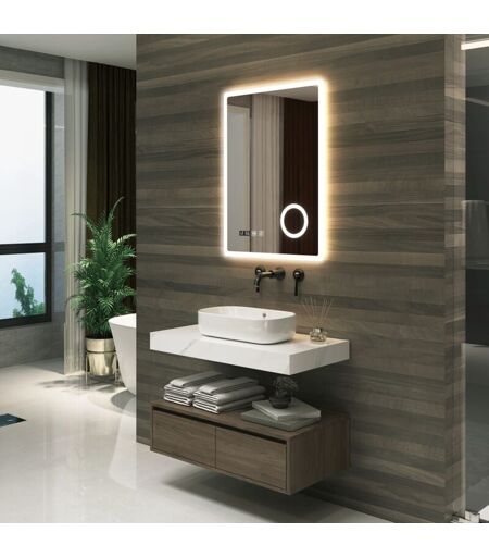Specchio LED Lo specchio LED unisce funzionalità avanzate con un design moderno per soddisfare le esigenze quotidiane. Con la possibilità di regolare la temperatura della luce bianca, puoi scegliere tra 3 opzioni: freddo, neutro e caldo. L'intensità delle luci è completamente personalizzabile per adattarsi perfettamente alle diverse situazioni. Lo specchio è dotato di un sistema che mantiene il tuo specchio sempre privo di appannamento garantendo che rimanga sempre perfettamente pulito e utilizzabile. La superficie è dotata di uno specchio ingranditore incerchiato da luci che ti consente di concentrarti sui dettagli, come il trucco o la cura della pelle. Inoltre per tenere traccia del tempo mentre ti prepari, lo specchio LED dispone anche di un orologio digitale ben visibile. Caratteristiche: - Temperatura della luce bianca regolabile: freddo, neutro, caldo - Alimentazione tramite connesione eletrica - Comandi a sfioramento - L'intensitá della luce regolabile fra 10% e 100% - Funzione ...