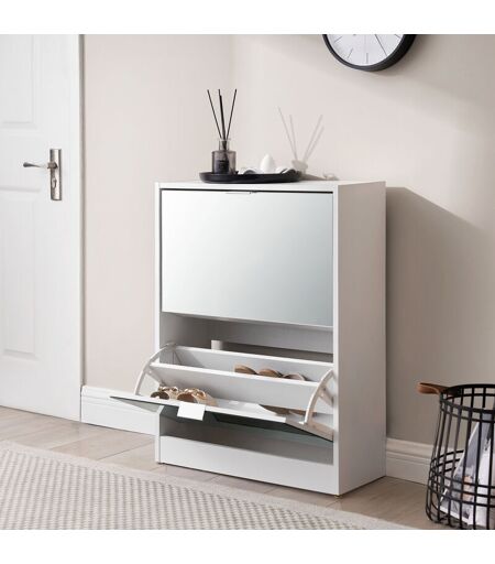 [EN.CASA] - Scarpiera Salvaspazio Kragerø con 2 Contenitori Ribaltabili Ante a Specchio - Bianco