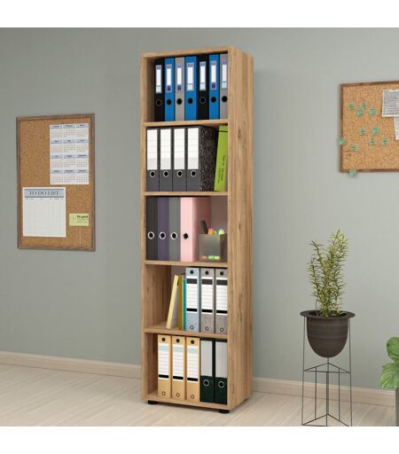[EN.CASA] Libreria 'Vara' Altezza 178 cm Scaffale a Terra con 5 Scomparti Aperti - Effetto Rovere