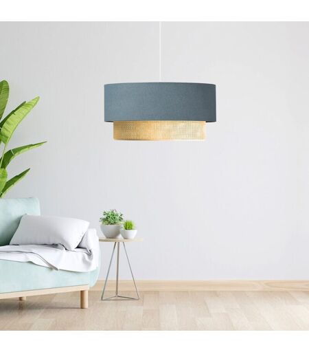 LUX.PRO Lampada a Sospensione 'Loughborough' Lampada da Soffitto con Paralume a Doppio Cilindro Lampadario con Abat-jour in Tessuto - Blu Grigiastro / Giallo