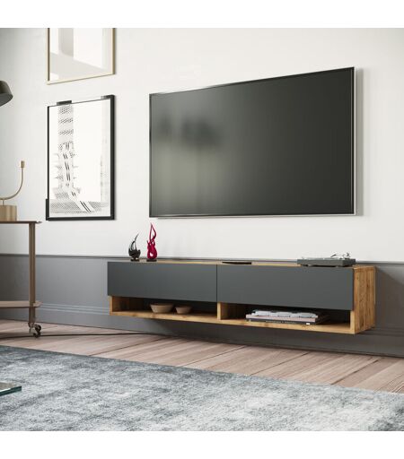 [EN.CASA] - Consolle da Parete 'Laitila' con 2 Ante e Scomparti Mobile Pensile Porta tv 140 cm - Rovere Rustico/Antracite