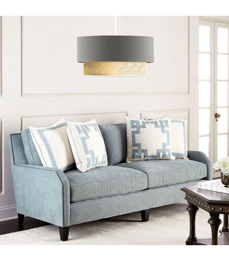 LUX.PRO Lampada a Sospensione 'Loughborough' Lampada da Soffitto con Paralume a Doppio Cilindro Lampadario con Abat-jour in Tessuto - Grigio / Giallo