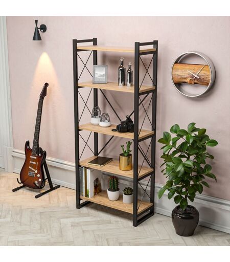 [EN.CASA] Scaffale a Terra 'Skørping' (AxLxP) 180 x 65 x 30 cm Libreria con 5 Ripiani Mobile Espositore con Telaio in Metallo - Nero / color Legno