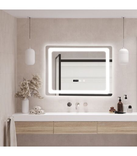 Specchio LED Il nostro specchio LED da parete è molto più di un semplice specchio: è un'icona di stile e innovazione che illumina il tuo ambiente con eleganza e funzionalità avanzata. La regolazione della luce tra il bianco freddo, neutro e caldo consente di creare l'atmosfera desiderata. Inoltre è possibile regolare anche l'intensità luminosa da un delicato 10% a un luminoso 100%. Sia che tu stia preparando un trucco impeccabile o creando un'atmosfera intima, hai il controllo completo sulla luminosità desiderata. Lo specchio LED è dotato di una funzione antiappannamento intelligente che mantiene la chiarezza della riflessione anche nei momenti più umidi, assicurando sempre un'immagine nitida e impeccabile. Lo specchio va oltre le aspettative offrendo anche un pratico orologio digitale integrato. Tutte le funzioni dello specchio sono facilmente controllabili tramite un comando a sfioramento posizionato strategicamente sulla superficie riflettente. Caratteristiche: - Temperatura della ...