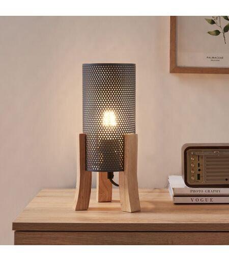 LUX.PRO Lampada da Tavolo Comodino Joelleldsvin con Paralume Cilindrico in Metallo 30x14x14 cm - Grigio