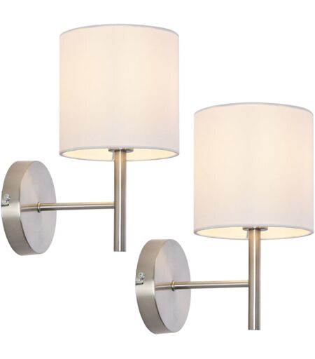 LUX.PRO Set Winsford di 2 Applique per Interni Paralume Cilindrico in Tessuto Bianco