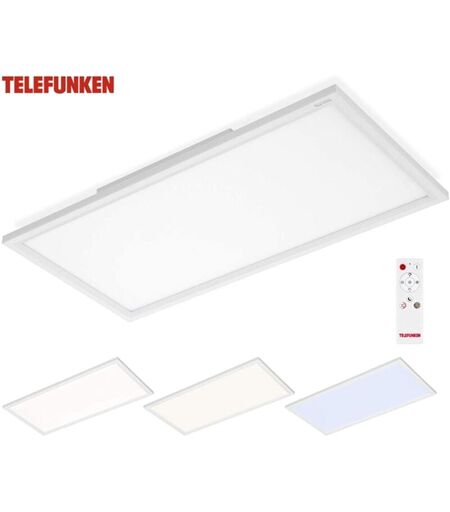 TELEFUNKEN - PANNELLO LED BIANCO 36 watt 3600 lumen 59,5x29,5x5CM CON TELECOMANDO Questa elegante lampada da soffitto della casa Telefunken è realizzata in plastica e metallo ed ha un aspetto elegante e moderno. La lampada è dotata di un modulo LED integrato. Con una potenza di 36 Watt e una potenza luminosa di 3600 lumen, produce una luce piacevole e allo stesso tempo luminosa. Inoltre la lampada viene fornita con un telecomando e può essere regolata nel colore della luce. Colore: bianco. Materiale: plastica/metallo. Altezza: 5,40 cm Larghezza: 29,50 cm Lunghezza: 59,50 cm Fonte luminosa: 1. Attacco: LED fisso Potenza: 36 W. Intensità luminosa: 3600 lumen Colore della luce: 3000 - 6000 Lampadina inclusa: sì. Tipo di lampadina: LED. Dimmerabile: sì. Classe di protezione IP: IP20. Classe di protezione: 2. Classe di efficienza energetica della lampada: A++ - A. Classe di efficienza energetica della lampadina: A+ Particolarità: con telecomando/colore della luce regolabile/con 30 minuti. ...