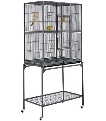 YAHEETECH Gabbia Voliera Grande per Uccelli Pappagalli Roditori in Metallo e Legno con Piedistallo Ruote Posatoi e Ciotole Nera 81 x 47 x 160 cm -
