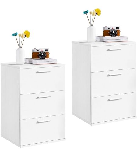YAHEETECH Set 2 Comodini Camera da Letto Moderni con 3 Cassetti Comò Tavolino Laterale da Divano Salotto 40 x 35 x 60 cm Bianchi -