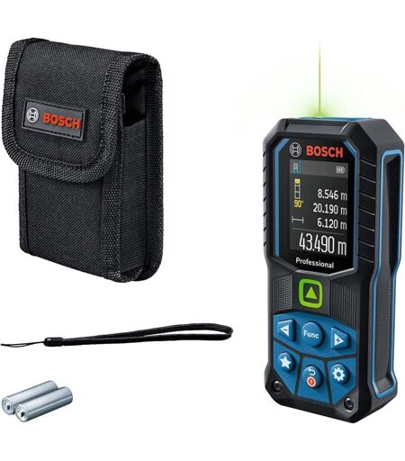 Bosch Professional Distanziometro laser GLM 50-23 G (laser verde, sensore di inclinazione, campo misura: fino a 50 m, robusto, IP65, ± 1,5 mm*, 2 batterie AA, tracolla, sacchetto) ...