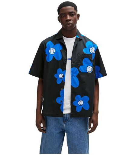 Hugo Camicia A Maniche Corte Eligino 01 Blue Black AOP Flower M