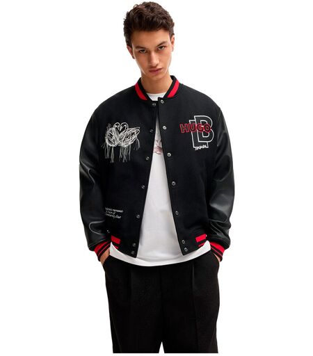 Giacca di pelle / bomber / vestibilità rilassata / collo alla coreana / patch / polsini e girovita a coste / chiusura con bottoni / hugo x les benjamins / responsabile. ...