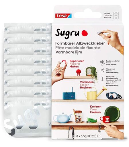 Sugru by tesa, l'adesivo multiuso modellabile per numerose applicazioni Mai prima d'ora un adesivo è stato versatile e pratico. Sugru by tesa è l'adesivo malleabile per tutti gli usi, con applicazioni quasi illimitate, grazie alla sua tecnologia al silicone. Usalo per riparare, fissare o sigillare, in casa, in giardino e anche in ufficio. Sugru è un vero tuttofare. Questo potente adesivo può essere utilizzato su numerosi materiali come vetro, ceramica, legno, metallo, gesso, pelle e sulla maggior parte delle plastiche. Grazie a questa versatilità, Sugru apre altre possibilità nel settore del fai da te. Il cavo di ricarica del tuo cellulare si sta rompendo: Risolvi questo fastidioso problema quotidiano con Sugru. Usalo per riparare le tazze, perché Sugru è lavabile in lavastoviglie, o anche per arrotondare gli spigoli in casa, le possibilità di utilizzo sono quasi illimitate. L'applicazione di questo adesivo non potrebbe essere facile, anche se a prima vista sembra essere un adesivo ...
