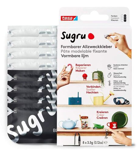 Sugru by tesa, l'adesivo multiuso modellabile per numerose applicazioni L'eleganza e la comodità in casa giocano un ruolo fondamentale nella nostra quotidianità. Il tocco individuale è diventato sempre importante negli ultimi anni, soprattutto in ambito domestico. Tendenze come il vintage e l'upcycling riflettono questa individualità. È qui che entra in gioco Sugru by tesa. L'adesivo a pasta da modellare realizzato per chiunque si diverta a trasformare idee creative in realtà. Grazie alla sua tecnologia al silicone, questo adesivo malleabile offre possibilità di applicazione quasi illimitate. Sia in casa che in giardino, Sugru è un vero tuttofare. Che si tratti di riparare piatti, montare decorazioni sui muri o abbellire oggetti di uso quotidiano, Sugru è sempre la giusta soluzione. Perché anche la riparazione stessa può attirare l'attenzione con l'aiuto di Sugru: la varietà di colori in cui offriamo la plastilina incollante permette di riutilizzare vecchi oggetti rotti. Perché non ...