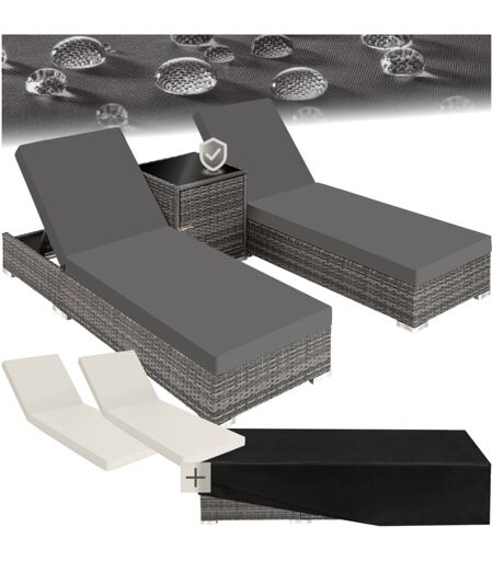 TECTAKE 2 lettini prendisole in rattan con telaio in alluminio, tavolo e telo protettivo - sdraio, sdraio da giardino, lettini da spiaggia