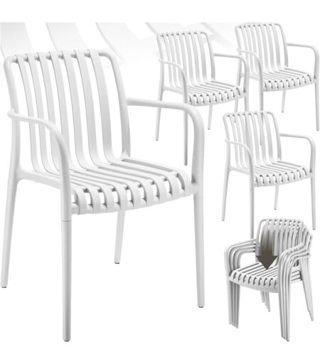 Avanti, c'è posto! Scopri le eleganti sedie da giardino Alcudia di tectake, che con le loro linee pulite e le strutture aperte strizzano l'occhio all'estate, mentre la combinazione tra schienale alto e braccioli larghi invita a sedersi e a rilassarsi. Alta qualità Questo set è realizzato con plastica di alta qualità, che rende le sedie particolarmente facili da pulire, resistenti e perfette per l'utilizzo all'esterno. La resistenza a pioggia, calore raggi UV e qualsiasi altra condizione atmosferica è garantita, così come la durevolezza. E oltre all'eccellente resistenza agli agenti atmosferici, questo robusto materiale assicura grande stabilità e capacità di carico. Design curato Per la massima sicurezza su ogni superficie, le gambe sono dotate di gommini antiscivolo. E quando non le usi, puoi impilare le sedie una sull'altra per risparmiare spazio. Le moderne sedie da giardino Alcudia di tectake sono la scelta perfetta per una colazione all'aperto o semplicemente per rilassarsi! ...