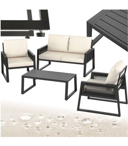 TECTAKE Set giardino lounge Captive in design Rope - Set di sedute, lounge da giardino, mobili da esterno - Set 1 (1 x divano / 1 x tavolo / 2 x poltrone)