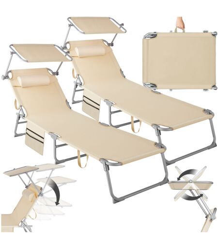 TECTAKE - Set di 2 sdraio Chloé 4 posizioni con cuscino poggiatesta - Sdraio da giardino, sdraio mare, sedia sdraio relax
