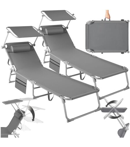 TECTAKE - Set di 2 sdraio Chloé 4 posizioni con cuscino poggiatesta - Sdraio da giardino, sdraio mare, sedia sdraio relax