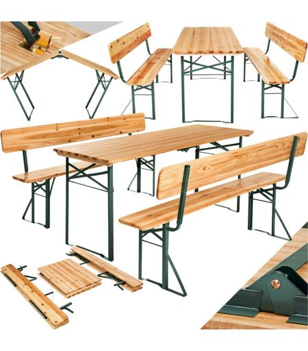 TECTAKE Set da esterno Franz ii, 3 pezzi, pieghevole, con schienali - Set birreria, panca da birreria, tavolo da birreria