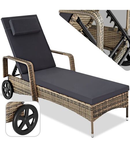 TECTAKE Lettino prendisole Cassis in alluminio e rattan - sdraio, sdraio da giardino, lettino mare