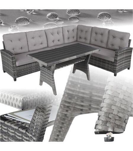 Inizia la tua vacanza nel tuo giardino con il confortevole salotto in rattan Catania di tectake. Le imbottiture per seduta estremamente morbide e gli spessi cuscini per la schiena garantiscono una dose extra di piacevole comodità. Il tavolo grande convince con l’effetto legno del suo piano di appoggio, con i ripiani aggiuntivi e con i piedi in plastica regolabili che non graffiano il pavimento. Il solido telaio in acciaio e il resistente intreccio in polyrattan completano perfettamente i punti di forza di questa costruzione facile da curare – ecco come grigliare e rilassarsi insieme con la serie Catania di tectake da esterno abbinabile a proprio piacimento. Caratteristiche Comodo salotto in rattan composto da elementi raggruppabili a proprio piacimento Intreccio di grande qualità in polyrattan resistente ai raggi UV Stabile telaio in robusto acciaio Imbottitura e cuscini molto morbidi e idrorepellenti Rivestimenti per seduta removibili e lavabili Tavolo con listelli effetto legno, ...