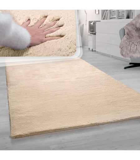 PACO HOME Tappeto Salotto Pelo Lungo Morbida Finta Pelliccia Di Coniglio Sabbia Crema 80 cm tondo -