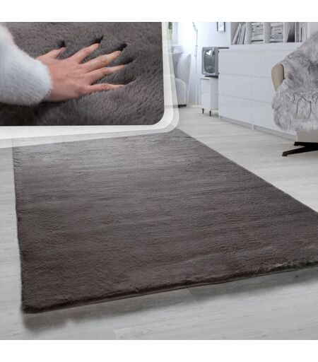 PACO HOME Tappeto Salotto Pelo Lungo Morbida Imitazione Finta Pelliccia Coniglio Antracite ø 120 cm tondo -