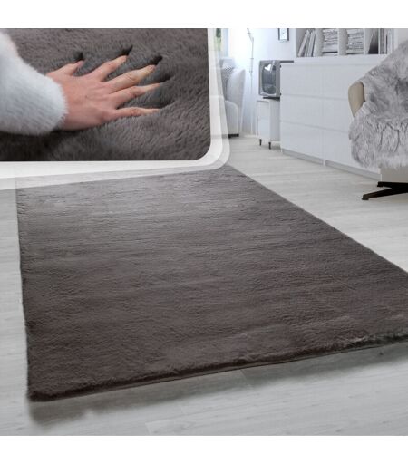 PACO HOME - Tappeto Salotto Pelo Lungo Morbida Imitazione Finta Pelliccia Coniglio Antracite 80 cm tondo