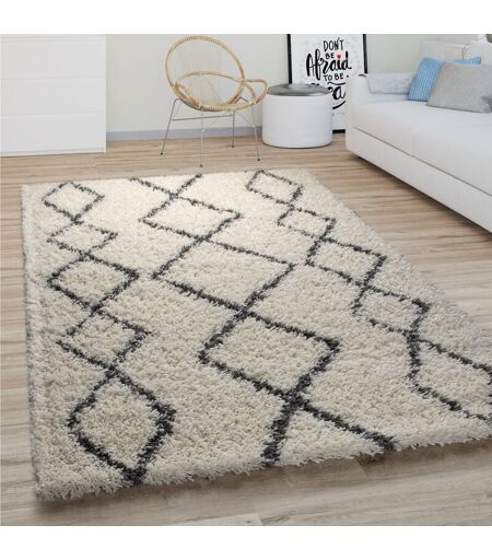 PACO HOME Tappeto Salotto Pelo Lungo Shaggy Moderno Boho Scandinavo Motivo Diamante ø 200 cm tondo, Crema -