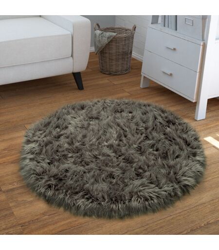 PACO HOME Tappeto in ecopelliccia, cuscini, a cuore, rotondo, varie forme, grigio scuro ø 120 cm tondo -