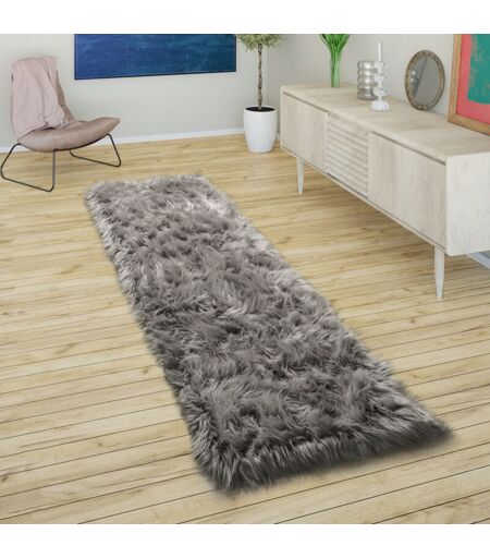 PACO HOME Tappeto in ecopelliccia, cuscini, a cuore, rotondo, varie forme, grigio scuro 50x150 cm -