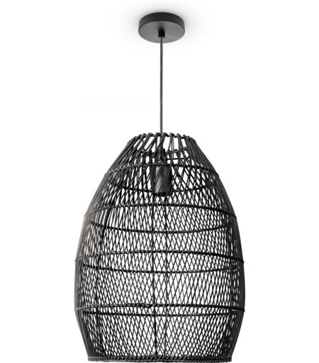 PACO HOME Sospensione Soggiorno Boho Lampade a Cesto Rattan Nero (Ø30cm), Luce a sospensione - Tipo 2 -
