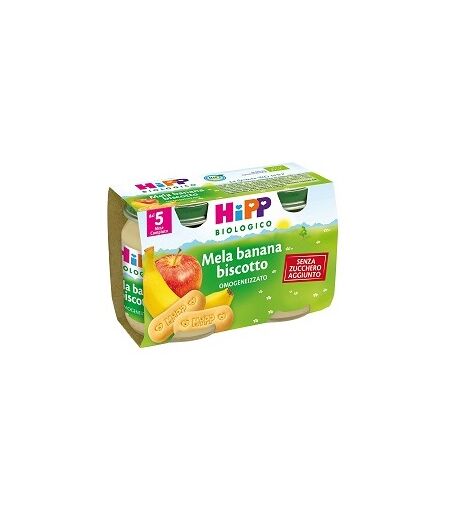 HiPP BIOLOGICO Mela Banana BiscottoProdotto indicato dal 5° mese compiuto, secondo il parere del medico. Ideale come merenda o dessert, con frutta 100% biologica. Senza aggiunta di zucchero (contiene naturalmente zuccheri), senza aggiunta di aromi,senza amido modificato*, senza aggiunta di coloranti*, senza conservanti*, non contieneorganismi geneticamente modificati*. Contiene glutine, contiene latticini. Può contenere tracce di uova e noci. * A norma di legge europea. Ingredienti Frutta da agricoltura biologica 75% (mela 50%, banana 25%, succo di limone da agricolturabiologica ottenuto da succo di limone concentrato); acqua; biscotto da agricolturabiologica 6% (farina di frumento, siero di latte dolce in polvere, burro, amido difrumento); vitamina C. Avvertenze Il vasetto non completamente utilizzato deve essere richiuso, conservato in frigorifero econsumato entro 24 ore. Caratteristiche nutrizionali per 100 g Valore energetico 312 kJ / 74 kcal Proteine 1,0g Carboidrati di cui zuccheri della frutta 15,1 g 10,9 g Grassi di cui saturi 0,7 g 0,4 g Fibre alimentari 1,5 g Sodio < 0,02 g Vitamina C 30 mg Formato Confezione da 2 vasetti da 125 g. Cod. IT471030X ...