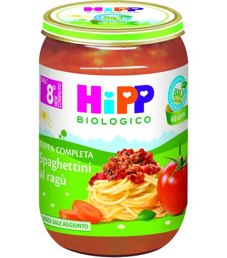 HiPP Pappa Pronta Spaghettini al Ragù 220g. Pasto completo e bilanciato con ingredienti biologici. Indicata dall’8° mese, salvo diversa indicazione pediatrica. ...