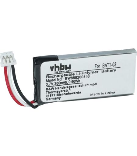 vhbw - the clever way - Batteria ricaricabile di ricambio, compatibile e di alta qualità, ad alta capacità, per cuffie e auricolari senza fili (cuffie wireless) (Può trovare tutti i modelli corrispondenti qui di seguito) - La batteria può essere caricata con il Suo caricabatterie standard o con uno compatibile - Le nostre batterie ricaricabili soddisfano tutti i requisiti rilevanti per la sicurezza operativa CONTENUTO DELLA SPEDIZIONE: - 1x batteria ricaricabile SPECIFICHE TECNICHE: - Tecnologia: Li-Poly - Capacità: 200 mAh - Tensione: 3,7 V - Energia: 0,74 Wh - Dimensioni (L x l x A): 3 x 1,7 x 0,4 cm - Numero di celle: 1 - Peso: 4 g COMPATIBILE CON Sennheiser D10, DW Office, DW Office ML, DW Pro 1, DW Pro 2 wireless Per garantire la compatibilità, verificare se la batteria ricaricabile attualmente in uso è presente nell'elenco. SOSTITUISCE: - BATT-03, 504374 Accessori e pezzi di ricambio di alta qualità. Per prolungare la durata di vita dei Suoi apparecchi elettrici. ...