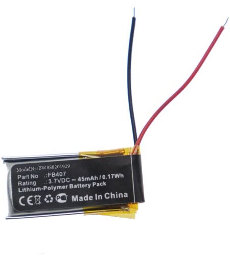 vhbw - the clever way - Batteria ricaricabile di ricambio, compatibile e di alta qualità, ad alta capacità, per smartwatch, bracciale fitness (Può trovare tutti i modelli corrispondenti qui di seguito) - La batteria può essere caricata con il caricabatterie standard o con uno compatibile - Le nostre batterie ricaricabili soddisfano tutti i requisiti rilevanti per la sicurezza operativa CONTENUTO DELLA SPEDIZIONE: - 1x batteria ricaricabile SPECIFICHE TECNICHE: - Tecnologia: Li-Poly - Capacità: 45 mAh - Tensione: 3,7 V - Energia: 0,17 Wh - Numero di celle: 1 - Peso: 1 g COMPATIBILE CON Fitbit Alta Activity, HR Per garantire la compatibilità, verificare se la batteria ricaricabile attualmente in uso è presente nell'elenco. SOSTITUISCE: - FB407 Accessori e pezzi di ricambio di alta qualità. Per prolungare la durata di vita dei Suoi apparecchi elettrici. ...