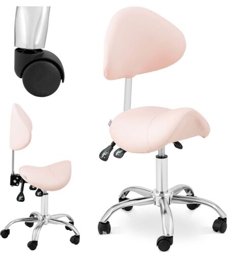 PHYSA - Sgabello con schienale Sgabello a sella Rosa, argento Regolabile in altezza