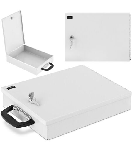 Codice produttore: 10240078 La scatola metallica Stamony offre una protezione aggiuntiva per documenti, gioielli, dispositivi elettronici e altri oggetti di valore in ufficio o a casa. È realizzata in acciaio laminato a freddo . Il coperchio è chiuso con una chiave (set da 2). La scatola ha dimensioni 355 x 255 x 70 mm e può contenere documenti fino a DIN A4 . Il design compatto consente di posizionare la scatola in un cassetto o in un armadio e la maniglia integrata consente di trasportarla in sicurezza. Caratteristiche del prodotto: - Versatilità - per documenti, contratti o oggetti di valore, - Capacità - dimensioni 355 x 255 x 70 mm adatte a documenti A4, - Durata - realizzato in acciaio laminato a freddo, - Sicurezza - bloccabile, - Mobilità - maniglia per un trasporto comodo. Parametri tecnici: - Modello - ST-DOC-100 - Codice produttore - 10240078 - Condizioni del prodotto - Nuovo - Dimensioni [mm] - 355 x 255 x 70 - Materiale - Acciaio laminato a freddo - Dimensioni (LxWxH) ...
