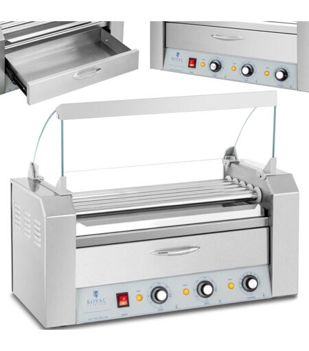 ROYAL CATERING Scaldavivande a rulli per hot dog con cassetto e coperchio - 5 rotoli