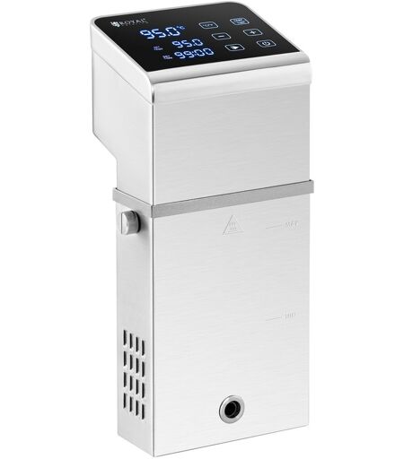 Vuoi cuocere in modo delicato grandi quantità di alimenti sottovuoto? Allora scegli questa macchina per cottura sottovuoto RCVG-43 dalle attrezzature per la gastronomia di Royal Catering! È adatta sia all'uso professionale nell'industria alberghiera, della ristorazione, sia per cucinare a casa. Efficiente roner da cucina che raggiunge velocemente la temperatura desiderata grazie agli elementi riscaldanti da 2300 W. La temperatura può essere impostata in un intervallo compreso tra 5 - 95 °C con una precisione di 0,1 gradi. Il termostato digitale integrato garantisce una temperatura costante durante il processo di cottura. Grazie alla vasta gamma di impostazioni, questa macchina può essere utilizzata per la preparazione di una ampia varietà di alimenti. Grazie alla sua capacità di 80 litri, questo roner a bassa temperatura è perfetto per l'uso commerciale in ristoranti, bistro e cucine di hotel. Dispone di un touch pad con un display LCD intuitivo e facile da usare. Il timer può essere impostato con precisione al minuto fino a 99 ore. L'alloggiamento del roner sous vide è realizzato in acciaio inox di alta qualità e duraturo. Questo materiale ha eccellenti proprietà fisiche. Questo lo rende particolarmente resistente allo sporco e particolarmente facile da pulire, grazie anche alle sue superfici lisce. Per poter sfruttare al meglio le capacità della cottura sottovuoto consigliamo di acquistare in aggiunta al roner sous vide, i sacchetti sottovuoto disponibili nel nostro assortimento Royal Catering. ...