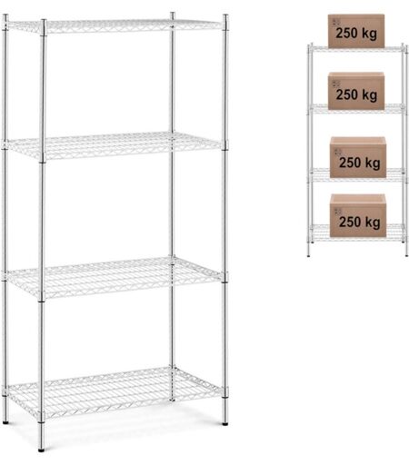 ROYAL CATERING - Scaffale Filo Metallico 1000 kg Scaffalatura 4 Ripiani 90 x 45 x 180 cm