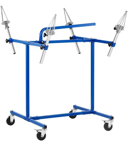 Il cavalletto per la verniciatura dei cerchioni consente una verniciatura uniforme da tutti i lati dei cerchi e altre parti della carrozzeria. Questo cavalletto per la verniciatura dei cerchi è anche un aiuto indispensabile per l'asciugatura dei componenti verniciati ed è quindi immancabile in ogni officina di verniciatura o automobilistica. La robusta costruzione in acciaio del cavalletto per verniciatura è dotata di quattro supporti a forma di cono sui quali è possibile posizionare in modo sicuro i cerchioni per verniciarli. Ciò permette di verniciare tutti e quattro i cerchi dell'auto allo stesso tempo ed evitare che la colorazione si discosti a causa delle diverse condizioni di illuminazione. I supporti possono essere regolati per un lavoro efficiente. Grazie alle quattro ruote, il supporto per la verniciatura dei cerchi può essere portato nella posizione migliore e bloccato saldamente con i freni. Dopo la verniciatura, il supporto può essere facilmente messo da parte per lasciar asciugare tranquillamente i cerchi. Questo ti permette di sfruttare al massimo lo spazio della tua officina di verniciatura senza danneggiare la vernice fresca durante gli spostamenti. ...