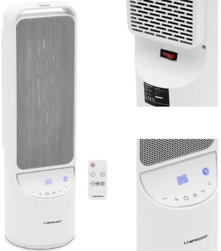 UNIPRODO Stufa elettrica oscillante ceramica 1200/2000 w bianca