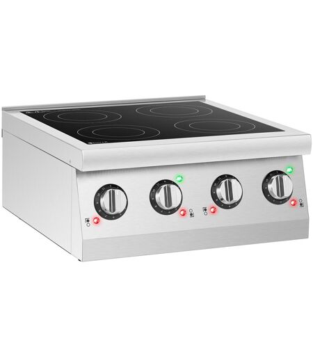 Cucina in modo rapido, efficiente e sicuro sulla piastra a induzione di Royal Catering. - Una bobina a flusso di corrente genera un campo magnetico alternato che riscalda pentole e padelle immediatamente e a risparmio energetico - - mentre la stessa piastra a induzione rimane fredda. Le 4 superfici separate sono perfette per pentole e padelle con un diametro fino a 26 cm. - Grazie alle sue caratteristiche mobili, la piastra è perfetta per il campeggio, durante i catering o come estensione dell'area di cottura nella cucina di casa. - - Grazie al potente elemento riscaldante da 6000 W (2 x 2000 W e 2 x 1000 W) in combinazione con l'efficiente tecnologia, il piano cottura a induzione raggiunge la temperatura desiderata tra 60 - 240 °C in brevissimo tempo. Tramite le manopole puoi regolare la temperatura e la potenza del riscaldamento. - - - - - Sulla piastra a induzione cucini senza fiamme libere o combustibili infiammabili, questo significa meno calore in cucina e più sicurezza durante la cottura. L'alloggiamento del fornello a induzione è realizzato in acciaio inossidabile. Questo materiale non solo convince per l'elevata resistenza agli agenti esterni e la lunga durata, ma è anche facile da pulire e da curare. ...