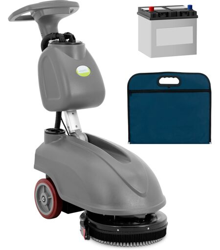 Per una rapida pulizia va bene il mocio, mentre per grandi superfici la macchina lavapavimenti di ulsonix è la scelta migliore. Sfrutti la sua potenza di pulizia per pavimenti sollecitati nei supermercati o nei magazzini. Oppure garantisca una brillantezza convincente su grandi superfici in concessionarie auto o musei. La macchina lavapavimenti a batteria si distingue per un'elevata potenza complessiva. Con 360 W porta la spazzola larga 35 cm a una velocità di 200 giri/min e rimuove efficacemente le macchie. La bocca di aspirazione approfondita rimuove successivamente l'acqua sporca. Con questi valori di prestazione finemente sintonizzati, pulisce superfici fino a 1350 m²/h. Con una durata della batteria di fino a 1,5 ore, otterrete risultati di pulizia ottimali anche in utilizzo continuo. Il display vi informa in ogni momento sullo stato attuale della batteria. Inoltre, un serbatoio dell'acqua pulita da 7 litri e un serbatoio dell'acqua sporca con una capacità di 12,8 litri consentono lunghe sessioni di lavoro senza interruzioni. La costruzione bilanciata della macchina per la pulizia dei pavimenti la rende manovrabile anche in corridoi stretti. In generale, la macchina per la pulizia dei pavimenti è progettata per un utilizzo semplice e comodo, con la possibilità di controllare la spazzola e la gomma di aspirazione con pochi interruttori. Grazie al manico ergonomico regolabile, potete adattare il dispositivo alla vostra altezza per un utilizzo confortevole. L'apparecchio funziona a un livello sonoro piacevole di 68 dB. ...