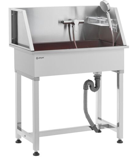 Prendersi cura dei propri animali domestici è facile con la vasca da bagno per cani in acciaio inox di physa. Il set completo offre tutto ciò di cui hai bisogno: tutti i tubi di collegamento (GL/2 / 60 cm ciascuno), un miscelatore, un soffione doccia con tre livelli di pressione, un porta shampoo e un tappetino in silicone antiscivolo. La vasca per cani in acciaio inossidabile può supportare fino a un peso di 60 kg. Il kit vasca per il lavaggio del cane è creato appositamente per la cura degli animali ed è costituito da un telaio stabile e resistente in acciaio inox con numerosi accessori regolabili. Ad esempio, utilizzando il miscelatore incluso nella spedizione con valvola in ceramica puoi impostare la temperatura in un intervallo di 0 - 90 °C. Il soffione della doccia largo 10 cm e lungo 24 cm con tubo flessibile di 1,7 m, offre tre livelli di pressione dell'acqua. I piedini in gomma antiscivolo assicurano sempre un appoggio stabile e allo stesso tempo proteggono il pavimento dai graffi. Il porta shampoo in lega di alluminio di 24,5 x 11,5 x 5,5cm permette di avere sempre le mani libere mentre si lava il cane. Grazie alla lavorazione e ai materiali di alta qualità, la vasca per cani è robusta, indeformabile e utilizzabile per lungo tempo. Inoltre, tutte le superfici sono lisce e facili da pulire, garantendo sempre un'impressione pulita e professionale. ...